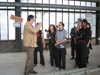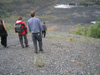 Die Künstlergruppe inmitten des ehemaligen Kohlelagers - heute erinnert nur noch eine leere Grube an die einstigen Kohlemassen